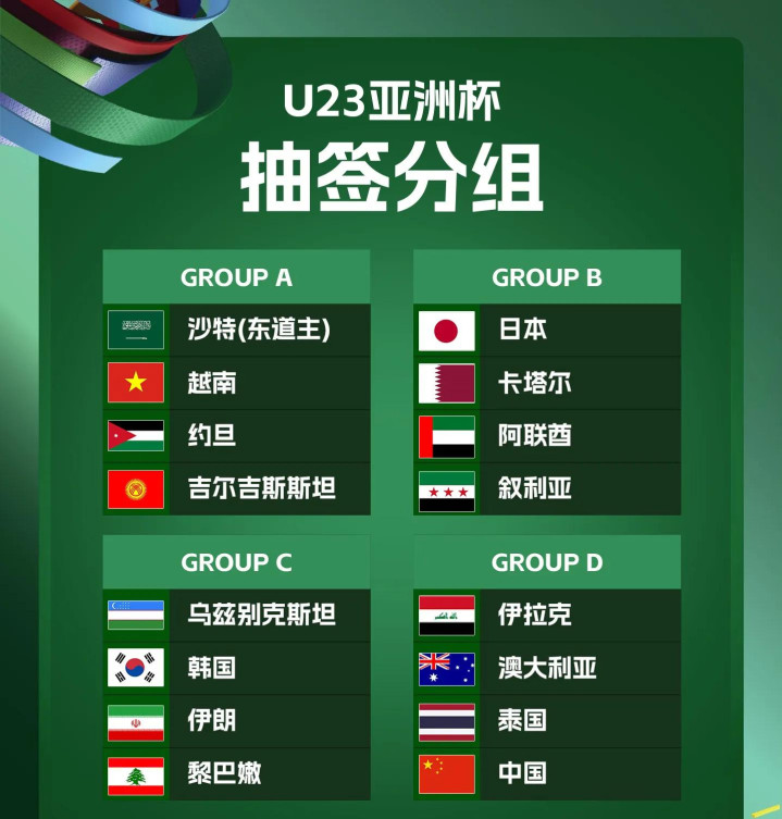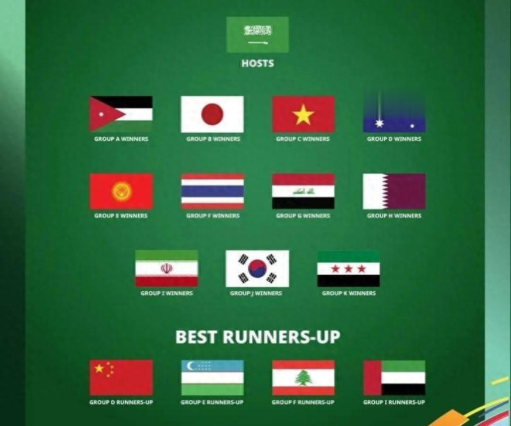 这一次的抽签总共分为四档,第一档包括东道主沙特、乌兹别克斯坦、日本、伊拉克。第二档包括韩国、越南、澳大利亚、卡塔尔,第三档包括泰国、约旦、阿联酋和伊朗,第四档包括中国、叙利亚、吉尔吉斯斯坦和黎巴嫩。