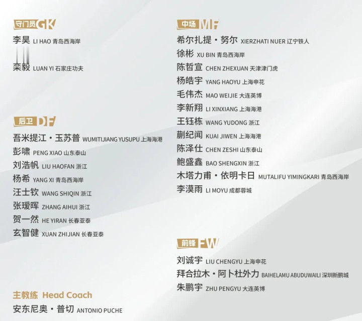 在这一次的抽签仪式之前,中国队有23球员已经完成集结,其中包括王钰栋、蒯继闻、拜合拉木等球迷们熟悉的年轻球员全部入选本次国家队。